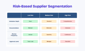 - Apply risk-based onboarding. Align the depth of validation with the supplier’s risk profile, reducing unnecessary effort for low-risk suppliers.