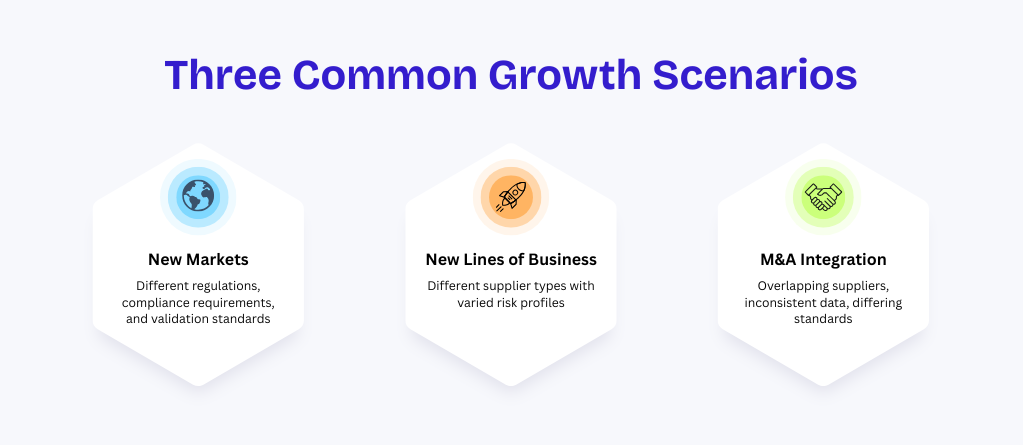 Growth also introduces less visible challenges. As organizations expand, decision-making becomes more distributed and accountability less clear. This increases the risk of inconsistency. Meanwhile, supplier risk evolves over time, making point-in-time validation insufficient.
